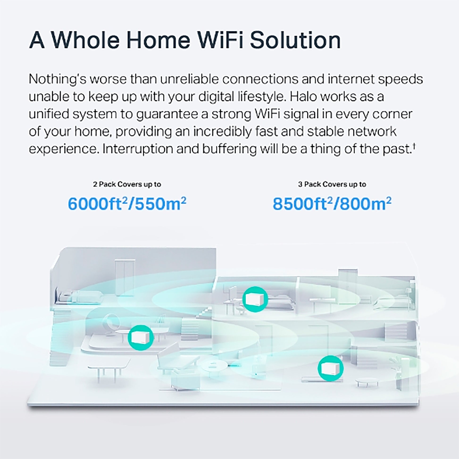 Roaming sin interrupciones con una red unificada. Las unidades Halo se conectan para cambiar automáticamente entre Halos mientras te desplazas por tu casa con un único nombre y contraseña de WIFI unificados.