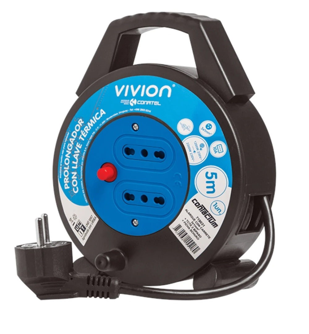 Alargue carrete 5 metros 2xbipaso a ficha Schuko Conatel