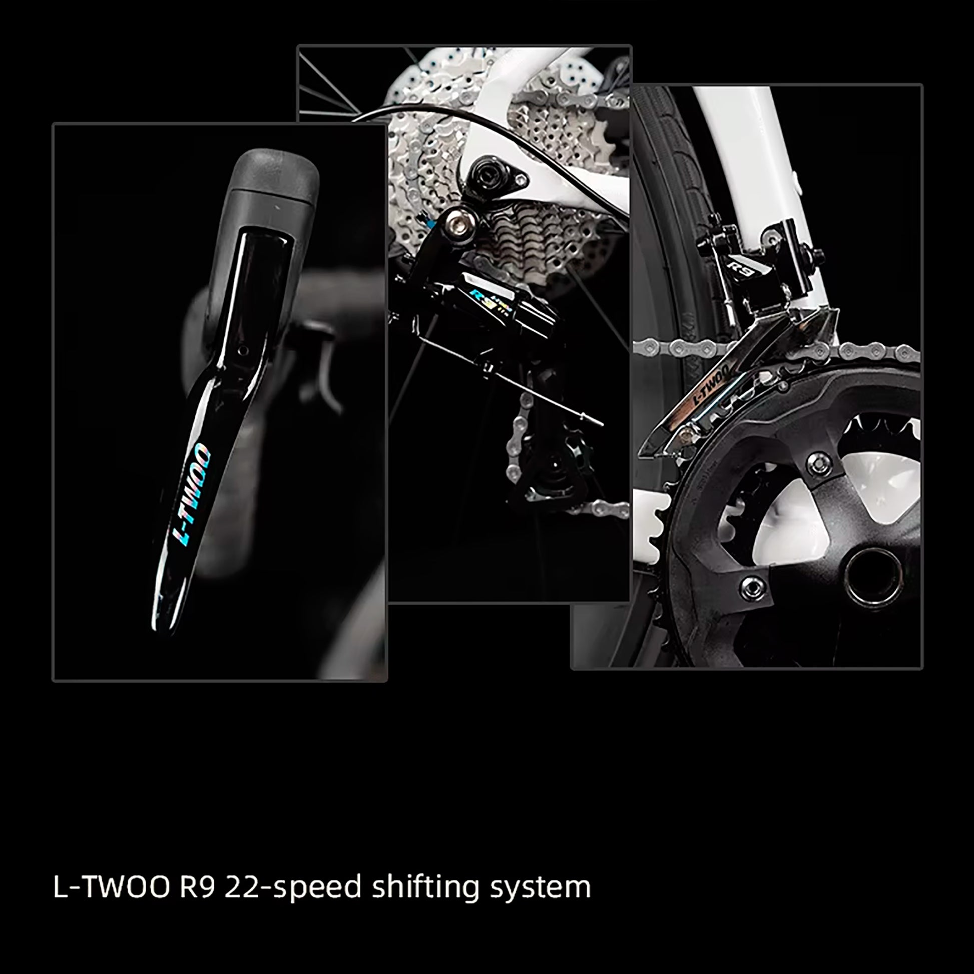Horquilla: ALEACIÓN DE ALUMINIO. Velocidades: 22. Palanca de Cambios: LTWOO R9. Descarrilador Delantero: LTWOO R9. Descarrilador Trasero: LTWOO R9. Bielas: 34 - 50 dientes x 170 mm, 11 velocidades. Cassette: 11 - 32 dientes, 11 velocidades, carretera. Cadena: 108L, 11 velocidades. Freno: LTWOO R9. Rueda Trasera: ALEACIÓN DE ALUMINIO 700C. Manubrio: ALEACIÓN DE ALUMINIO 400 x 80 mm. Poste Asiento: ALEACIÓN DE ALUMINIO 54,5 x 260 mm. Talle: M. Color: NEGRO.