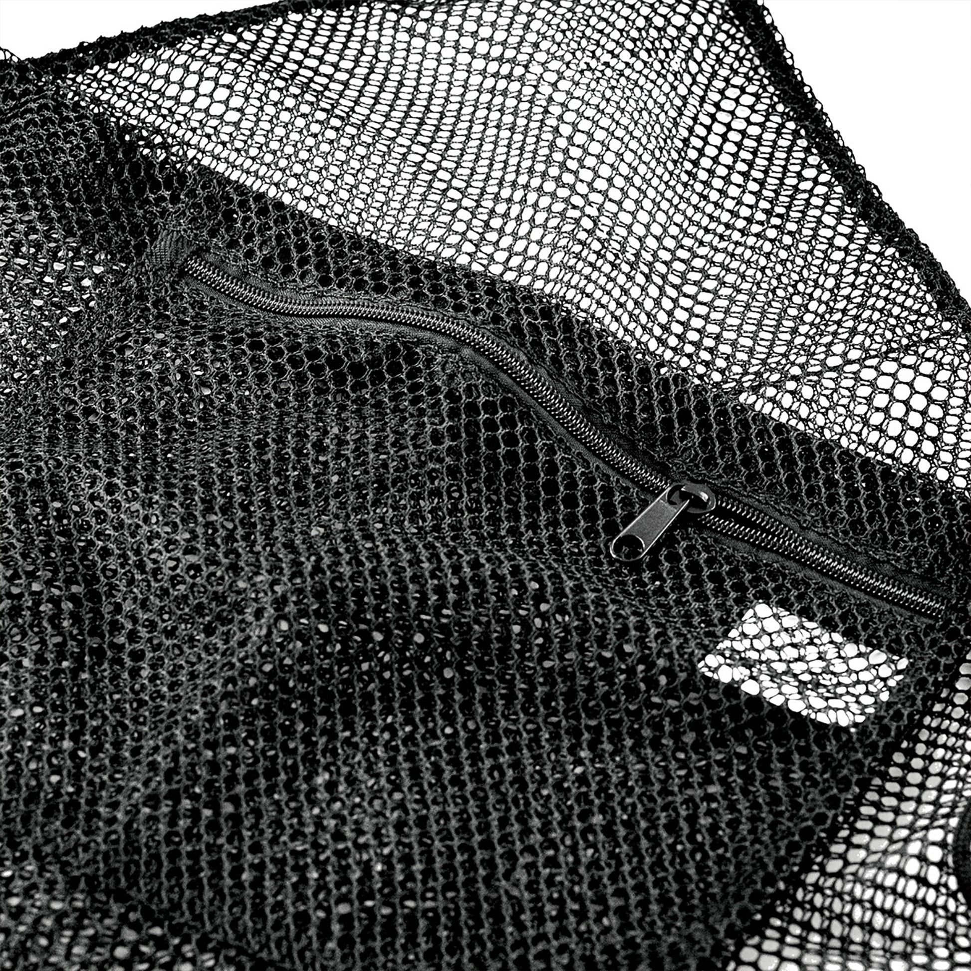 BOLSA DE MALLA DE GRAN CAPACIDAD CONVENIENTE PARA ALMACENAR TODO EL EQUIPO DE NATACIÓN. EL MATERIAL DE MALLA DE NYLON PROPORCIONA FLUJO DE AIRE PARA UN SECADO RÁPIDO.