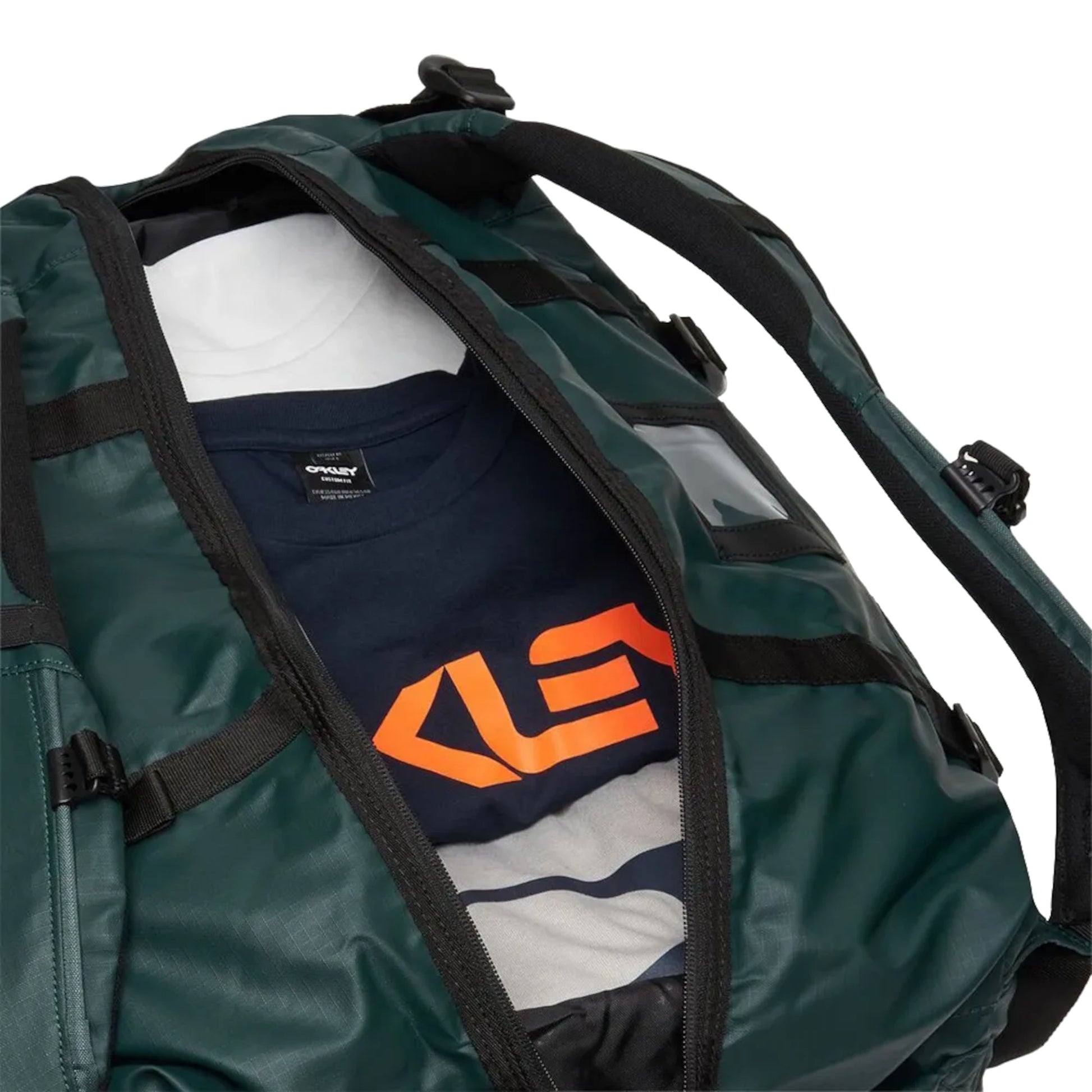 Capacidad: 50 Litros. RESISTENTE AL AGUA. 2 asas con función de correas de hombro acolchadas. 4 Asas laterales. Correa del esternón que ayuda a distribuir el peso. Dimensiones: 560 x 290 x 325 mm APROX. Material: Poliéster. Color: VERDE (Hunter Green)