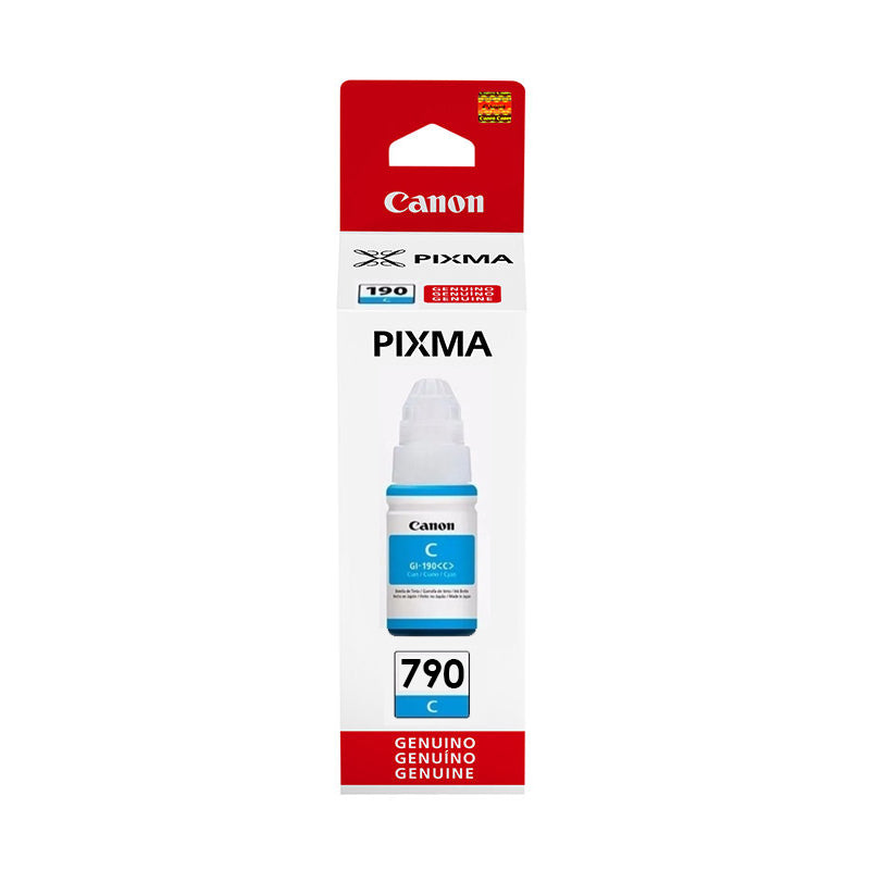 La botella de tinta Cian GI-190 contiene una fórmula de tinta a base de pigmentos para producir un texto nítido y preciso.