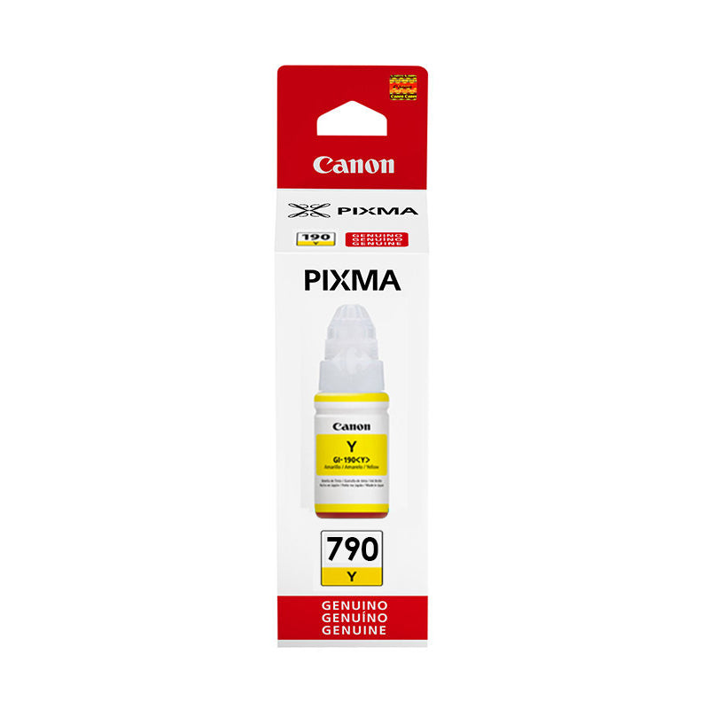 La botella de tinta Amarillo GI-190 contiene una fórmula de tinta a base de pigmentos para producir un texto nítido y preciso.