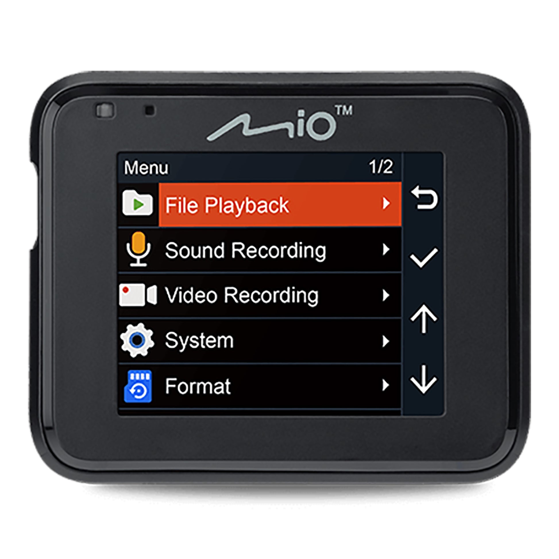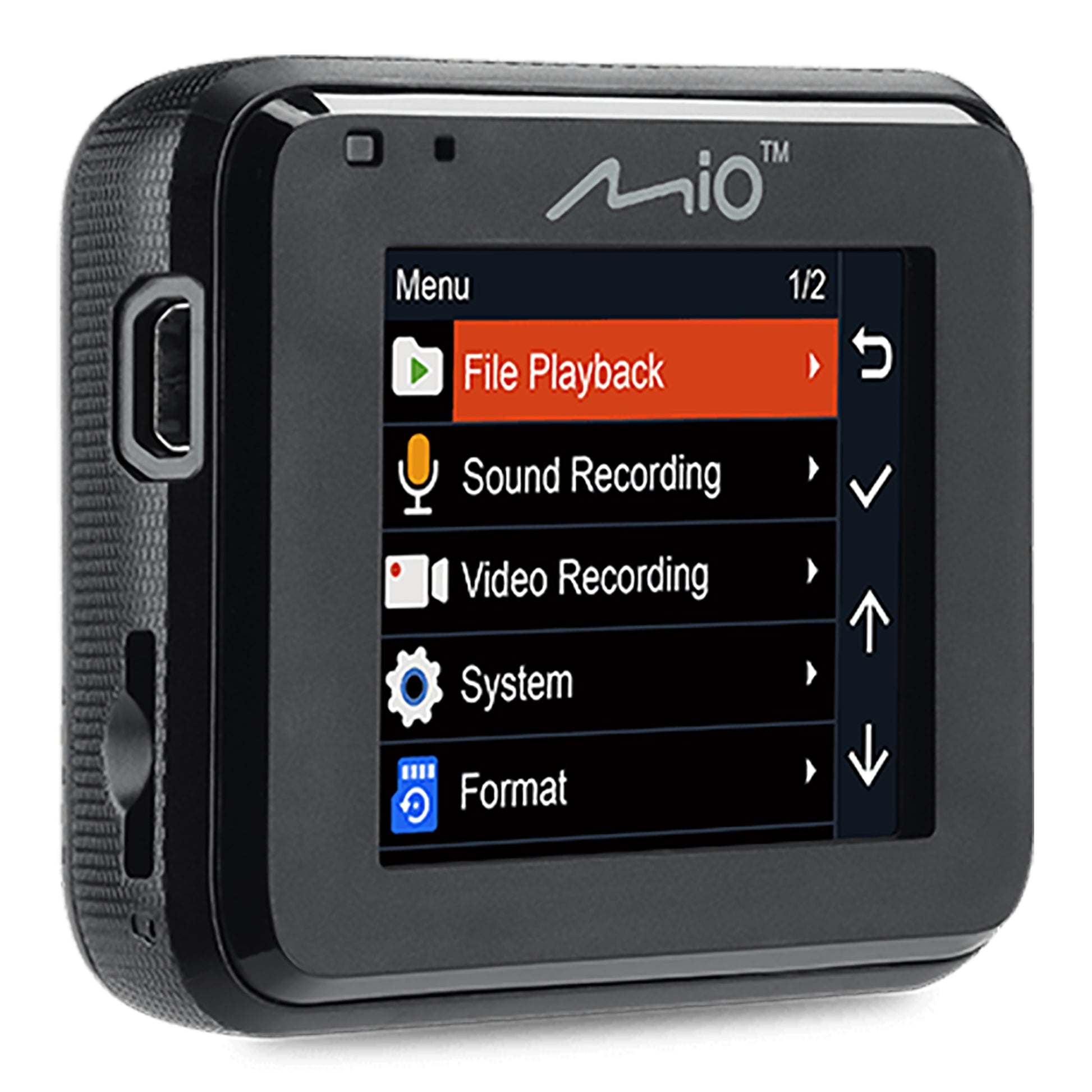 MIO - CÁMARA PARA AUTO MIVUE C320 Pantalla: 2''. Resolución: 1080P FHD, 1920 x 1080 píxeles. Sensor de Video: CMOS. Apertura: F2.0. Ángulo de Visión: 130°. Sensores: G-sensor 3 ejes. Modo de visualización HUD. Formato de Grabación: MP4. Graba audio. Grabación WDR. Grabación de eventos. Ajuste del vehículo eléctrico. Etiqueta de video de personalización. Modo foto. Encendido automático. Lector de Tarjetas: MICRO SD hasta 128 GB. Conector: MINI USB x 1. Montaje giratorio. Batería: 240 mAh. Dimensiones: 62,6 x 51,2 x 37,4 mm APROX. Color: NEGRO.