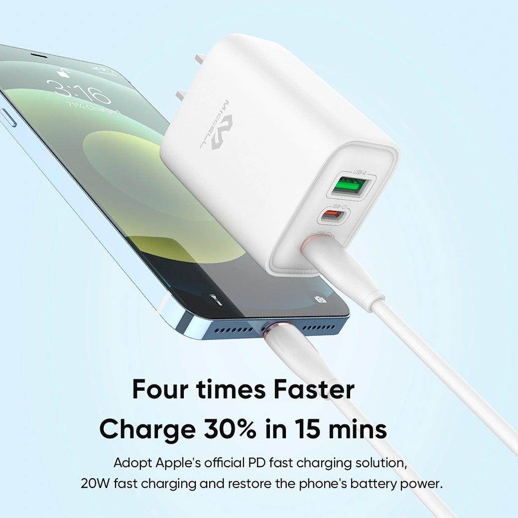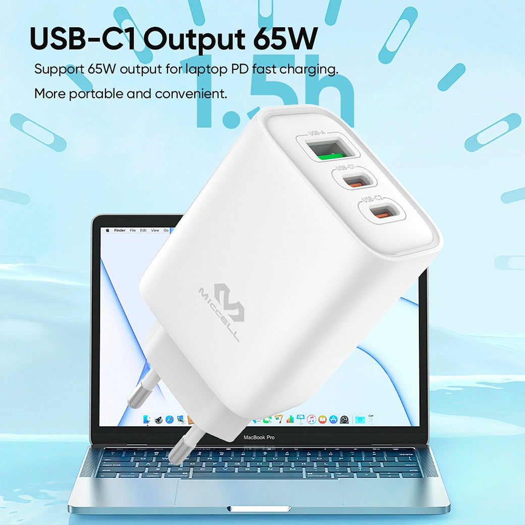 Cargador pared MICCELL 3 Puertos 65W Carga Ràpida