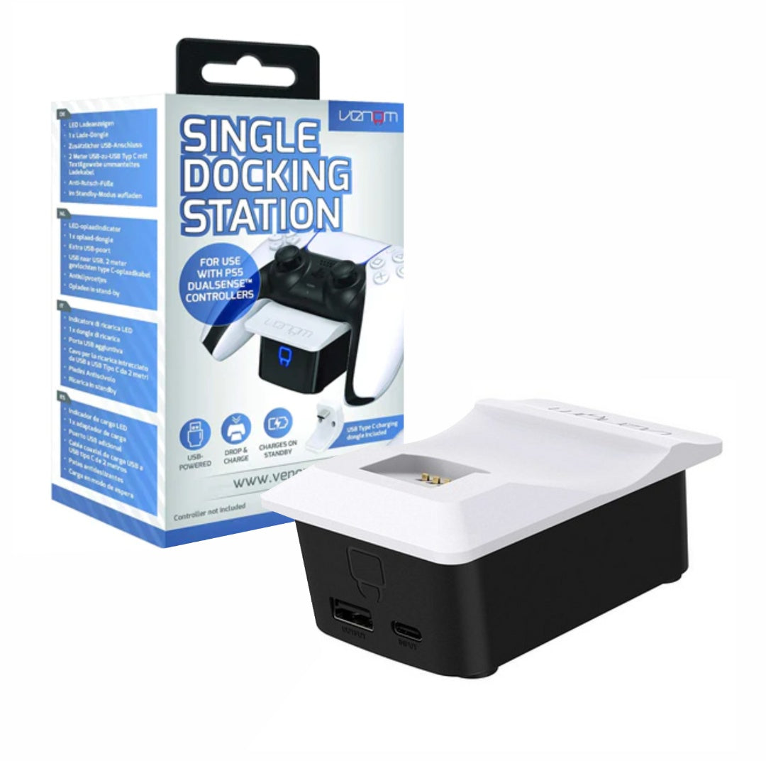 Incluye un dongle de carga para colocar y cargar fácilmente El diseño de caída y carga elimina la necesidad de conectores de carga con cables complicados El indicador de carga LED frontal se ilumina en rojo cuando se está cargando y se vuelve azul cuando la energía se restablece por completo Incluye un cable de carga trenzado USB a USB tipo C desmontable de 1 metro que ofrece total flexibilidad con la colocación Puerto USB trasero adicional para permitir la carga de otros dispositivos Base antideslizante Continúa cargándose cuando la consola se coloca en modo de espera