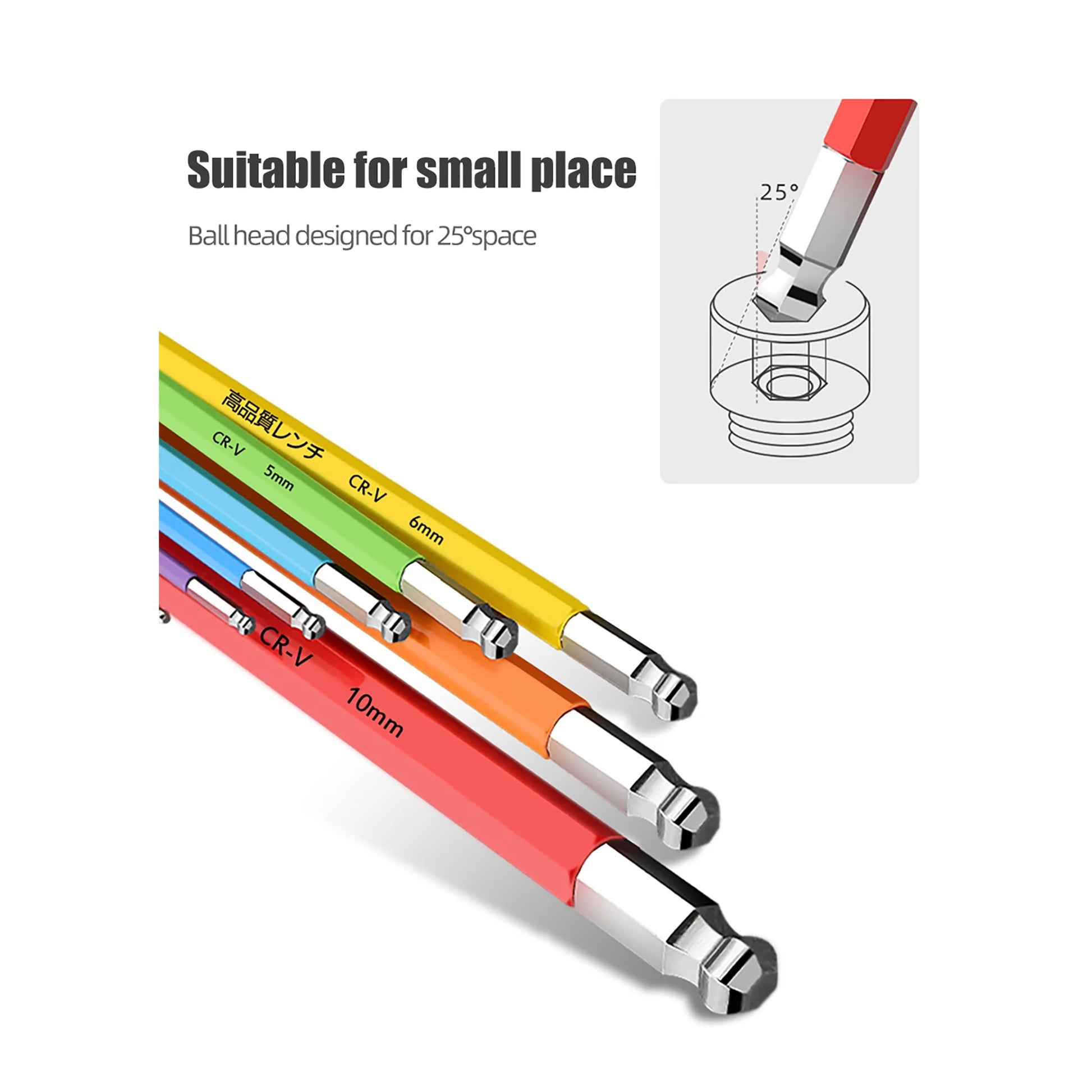 Identificación rápida, fundas protectoras de diferentes colores para una rápida identificación. Resistencia al aceite, antideslizante. Adecuadas para espacios pequeños, cabezas esféricas diseñadas para espacios de 25°. Útiles para una variedad de aplicaciones, cuentan con 2 extremos: forma de bola / plano y doble uso. Fuertes y duraderas, aleación de 1 pieza con proceso de doblado en ángulo recto de 90°. Material: ALEACIÓN SELECCIONADA. INCLUYE: LLAVES ALLEN 1,5/2/2,5/3/4/5/6/8/10 mm.