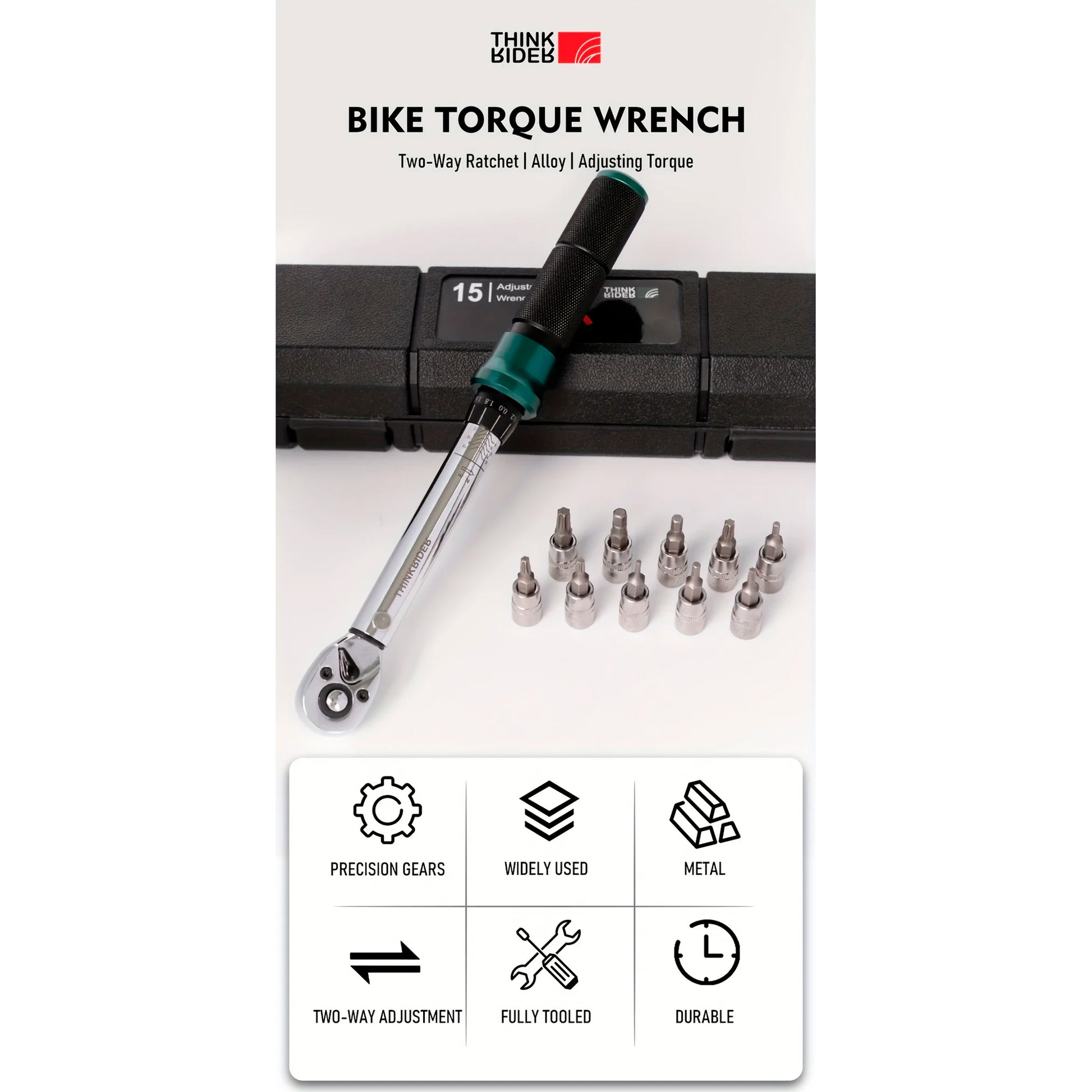 Juego de llave torque de 1/4'' con puntas Torx y Allen, ideal para mantenimiento de bicicletas de ruta y montaña. Permite cambiar entre izquierda y derecha. Botón de liberación rápida. Escala láser galbanizada, clara y fácil de leer. Mango antideslizante texturizado para un agarre firme y mayor comodidad.