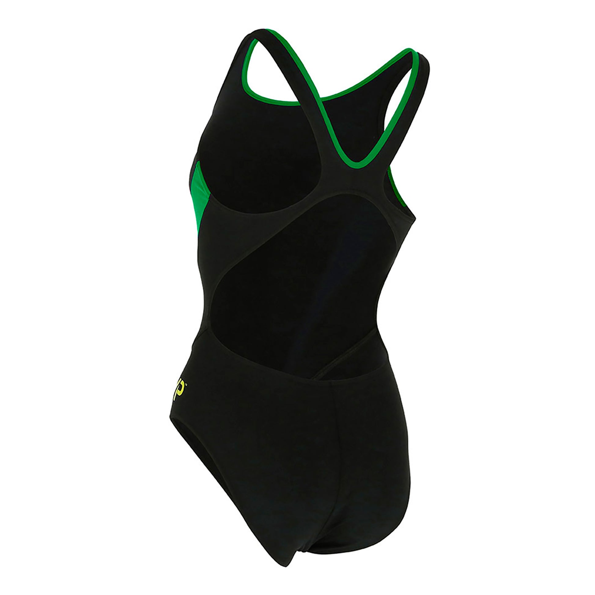 MALLA TOTALMENTE FORRADA. CUELLO SUPERIOR: Evita la entrada de agua. DISEÑO DE CORREA ABIERTA: Se ajusta perfectamente entre los omóplatos y se adapta a una variedad de cuerpos. DISEÑO DE CADERA CON PANELES: Para un ajuste natural y contorneado. Protección: UV UPF 50+. Material: 53% POLIÉSTER / 47% PBT. Color: NEGRO / VERDE. Tamaño: 18.