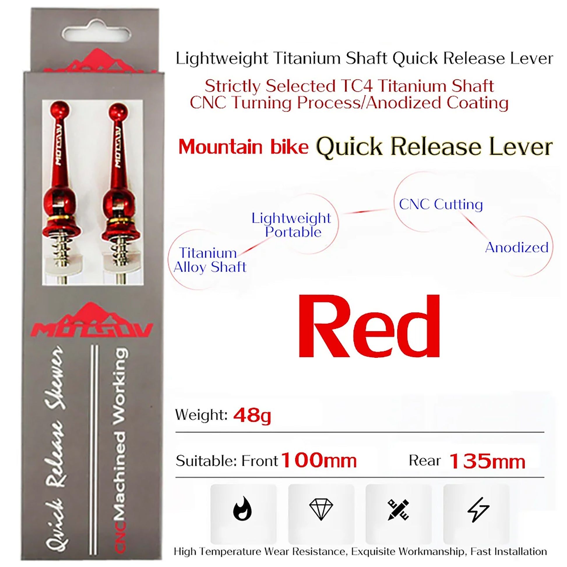 ADECUADO PARA APERTURA FRONTAL 74 mm / APERTURA TRASERA 130 mm. Material: ALEACIÓN DE ALUMINIO + TITNAIO (eje). Peso: 41,6 g APROX. Dimensiones: 100 x 135 x 74-130 mm APROX. Color: ROJO.