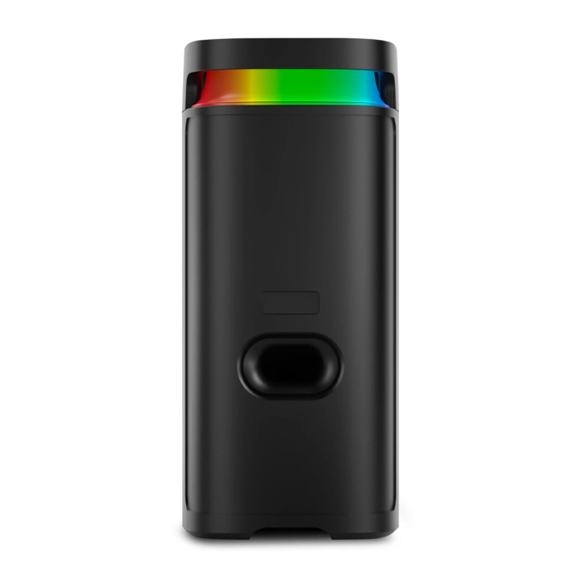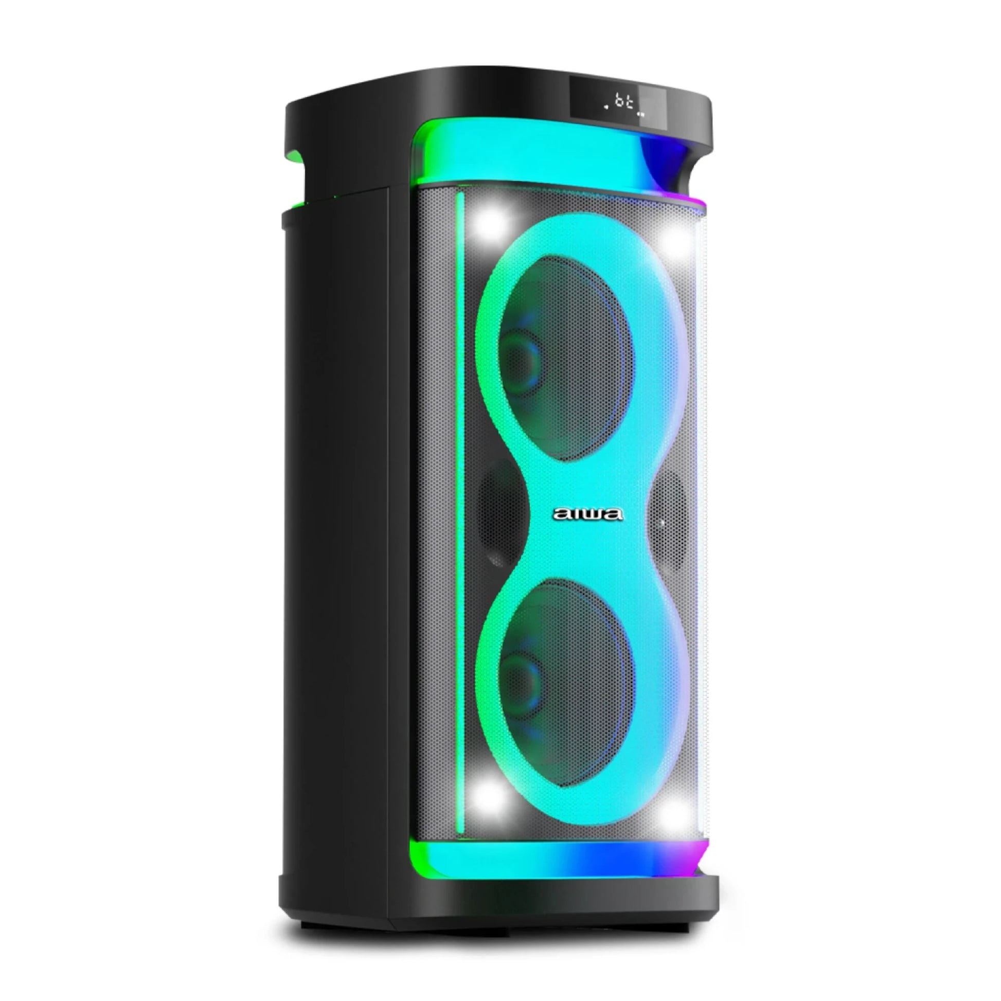AIWA - PARLANTE AWPOH4D Conectividad: BLUETOOTH 5.0. Alcance BLUETOOTH: 10 m APROX. Tecnología: True Wireless Stereo. Potencia de Salida: 600 W PMPO. Iluminación LED. Ecualizador. Radio FM. Puertos: USB-A x 1, USB-C x 1, AUX IN (3,5 mm) x 1, MIC IN/GUITAR IN (6,35 mm) x 2, TARJETA TF x 1. Dimensiones: 563 x 250 x 261 mm APROX. Incluye Micrófono. Color: NEGRO.