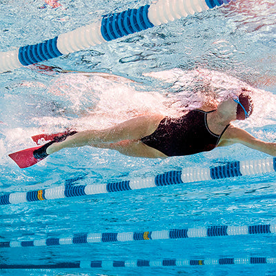 DISEÑO DE ALETA LARGA HIDRODINÁMICA FLOTANTE CON TALÓN CERRADO. La flotabilidad de las aletas levanta las piernas hacia la superficie, reduciendo la resistencia del resto del cuerpo. El diseño de talón cerrado proporciona protección contra la hiperflexión de los tobillos y aumenta la comodidad.