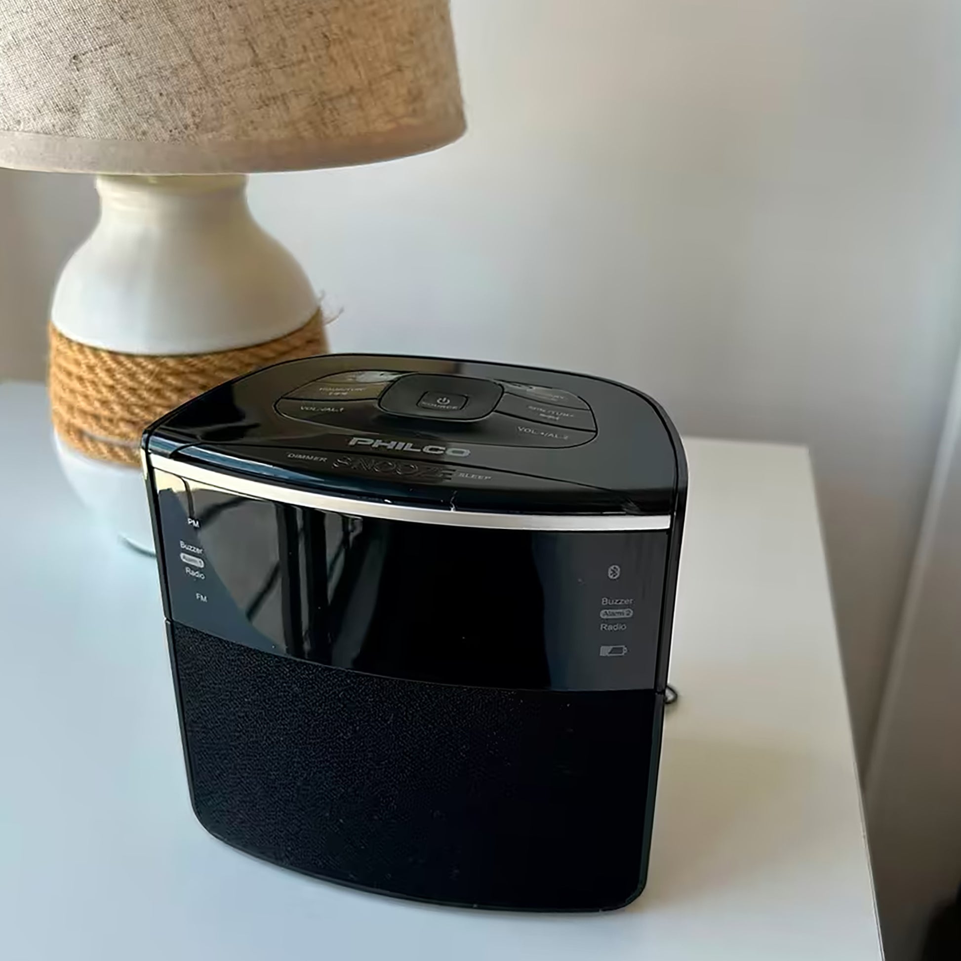 PHILCO - RADIO RELOJ PAR3120-BT Conectividad: BLUETOOTH. Alarma Dual: Fija dos horarios distintos para despertar con alarma o música. Pantalla : 1,2''. Función Snooze. Radio FM Digital con 30 memorias prefijadas. Puertos: USB 2,4 A x 1 (para carga de dispositivos móviles). Dimensiones: 120 x 115 x 75 mm APROX. Fuente de Alimentación: 100 - 240 VCA. Batería: CR2032 x 1 (solo para reloj de respaldo). Color: NEGRO.