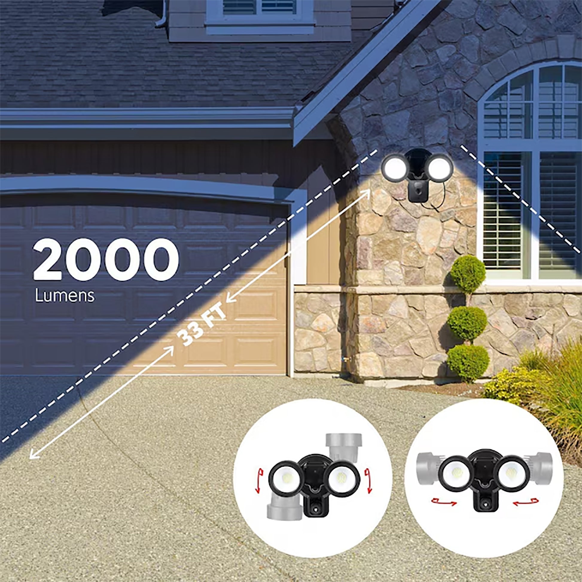 Potente foco. El reflector con Wasserstein de 2000 lúmenes mejora la visión de la cámara parpadeante en condiciones de poca luz, lo que permite monitorear cada rincón oscuro de la propiedad.