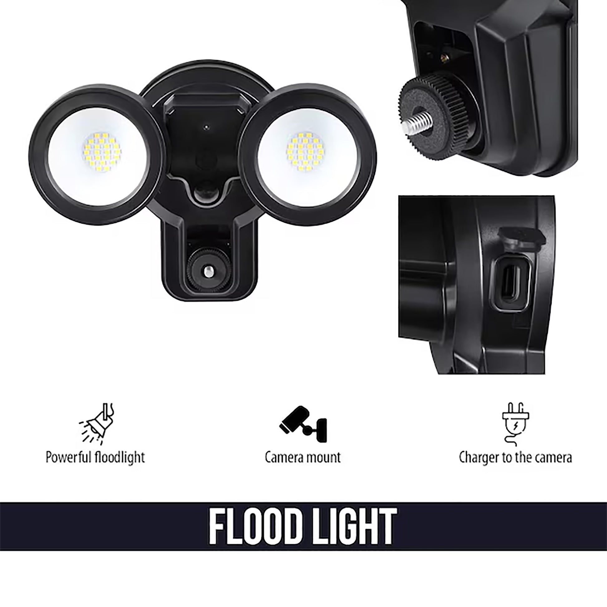 Compatibilidad: BLINK OUTDOOR 2, BLINK XT2, BLINK XT. Brillo: 2000 Lúmenes. Rango de Detección de Movimiento: 33 pies APROX. Peso: 1 kg APROX. Dimensiones: 230 x 190 x 140 mm APROX. Color: NEGRO. NO INCLUYE CÁMARA.