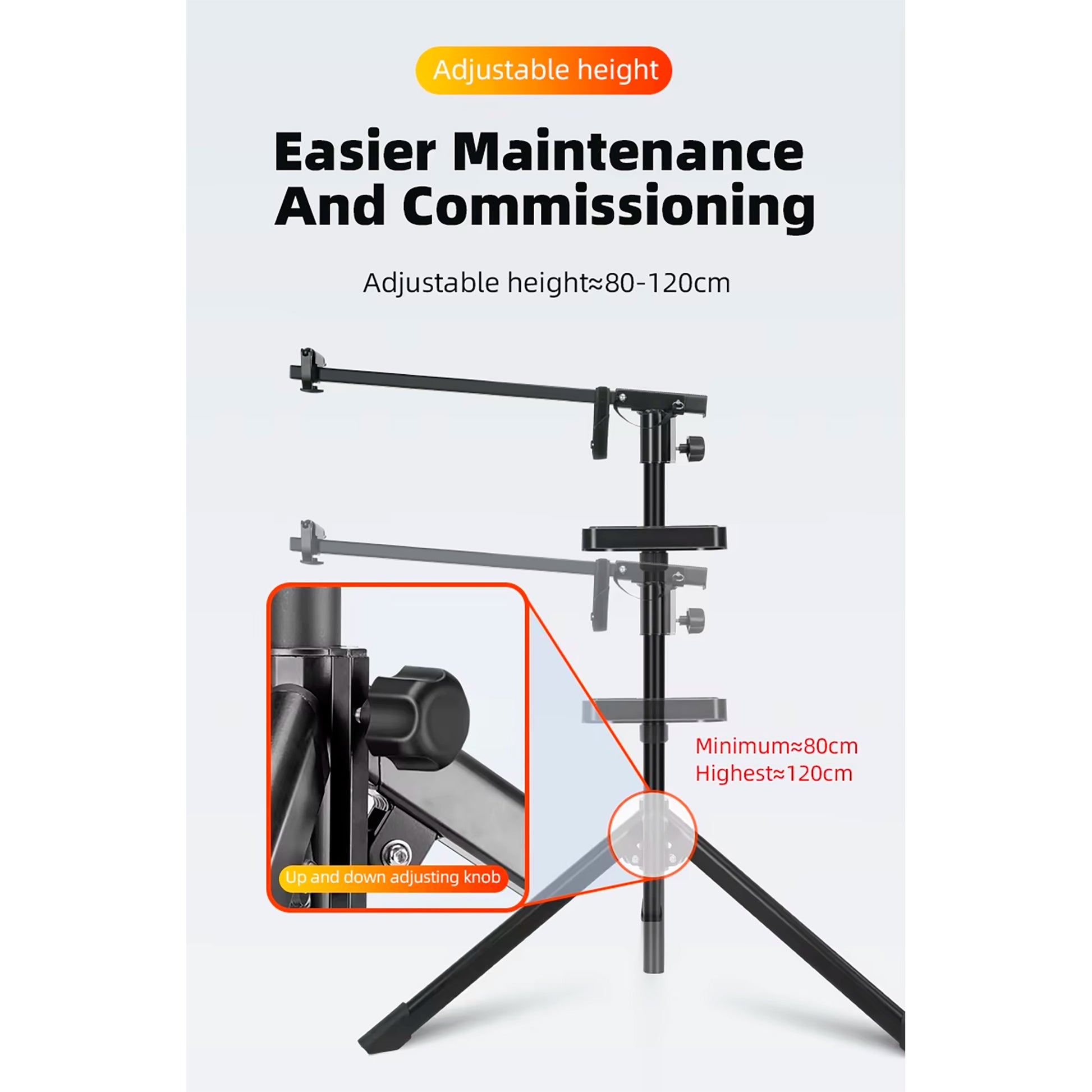 CAPACIDAD DE CARGA: 27 kg. Altura Ajustable: 80 - 120 cm. Soporte tipo trípode sólido y estable. Patas antideslizantes. Clips ajustables forrados con goma. Bandeja para herramientas con posición ajustable. Materiales: ALEACIÓN DE ALUMINIO. Compatibilidad: Cuadros de bicicleta de 25 a 55 mm. Peso: 4,7 kg APROX. Color: NEGRO.