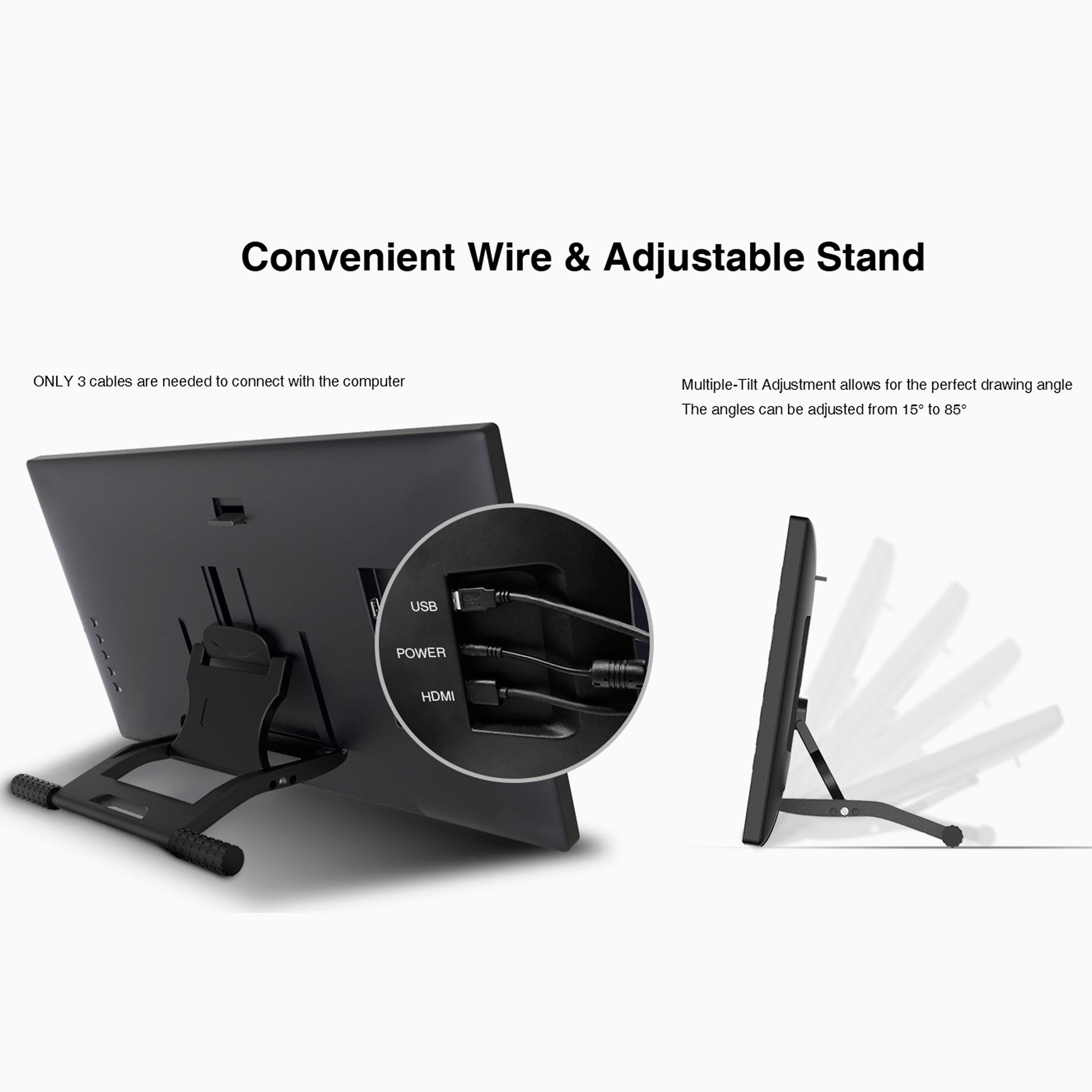 VEIKK - TABLETA DIGITALIZADORA STUDIO VK1560 7 TECLAS PERSONALIZABLES. 1 DIAL. Área Activa: 15,6''. Resolución: 1920 x 1080. Tipo de Pantalla: IPS, LAMINACIÓN COMPLETA. Ángulo de Visión: 178°. Lápiz: P03, sin batería. Sensibilidad a la Presión: 8192. Ángulo: 60°. Tasa de Informe: 290 PPS. Altura de Lectura: 10 mm. Fuente de Alimentación: 100 - 240 V. Compatibilidad: WINDOWS 7 o + / MAC 10.12 o + / CHROME 88 o + / LINUX. SOPORTE AJUSTABLE INTEGRADO. Dimensiones: 425 x 261 x 15 mm APROX. Color: NEGRO.