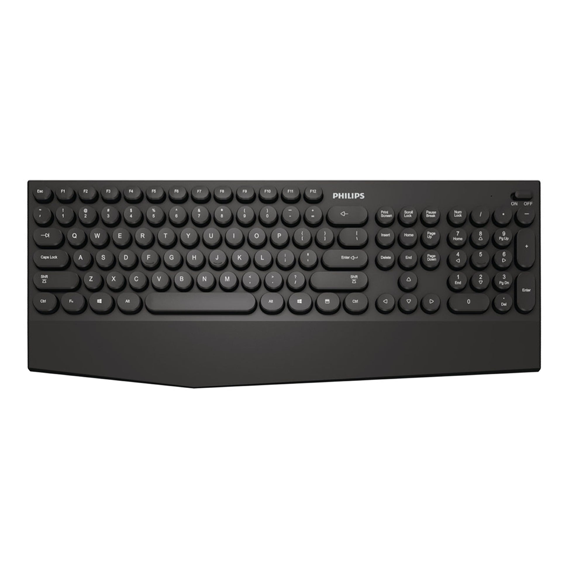 PHILIPS - TECLADO INALÁMBRICO SPK6303 Conectividad: USB / BLUETOOTH y 2,4 G. RESISTENTE AL AGUA (para limpieza y derrames ocasionales). Teclado en Español, Numérico. Alcance BLUETOOTH: 10 m APROX. Teclas: 104. Teclas redondeadas de estilo chocolate. Tipo de Tecnología Key Rollover: 6 teclas (A, S, D, J, K, L). Diseño elegante y silencioso. Vida Útil de las Teclas: 10 millones de pulsaciones. Compatibilidad SO: WINDOWS 8 o superior / IOS 10.10 o superior / ANDROID 4.3 o superior. Peso: 405 g APROX. Dimensiones: 455 x 199 x 27 mm APROX. Color: NEGRO.