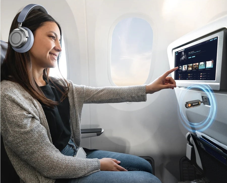 Ideal para sistemas de entretenimiento de vuelos, convirtiendo audio con cable a inalámbrico.